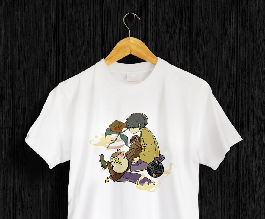 フジハラくんとすねこすりさんのTシャツです。